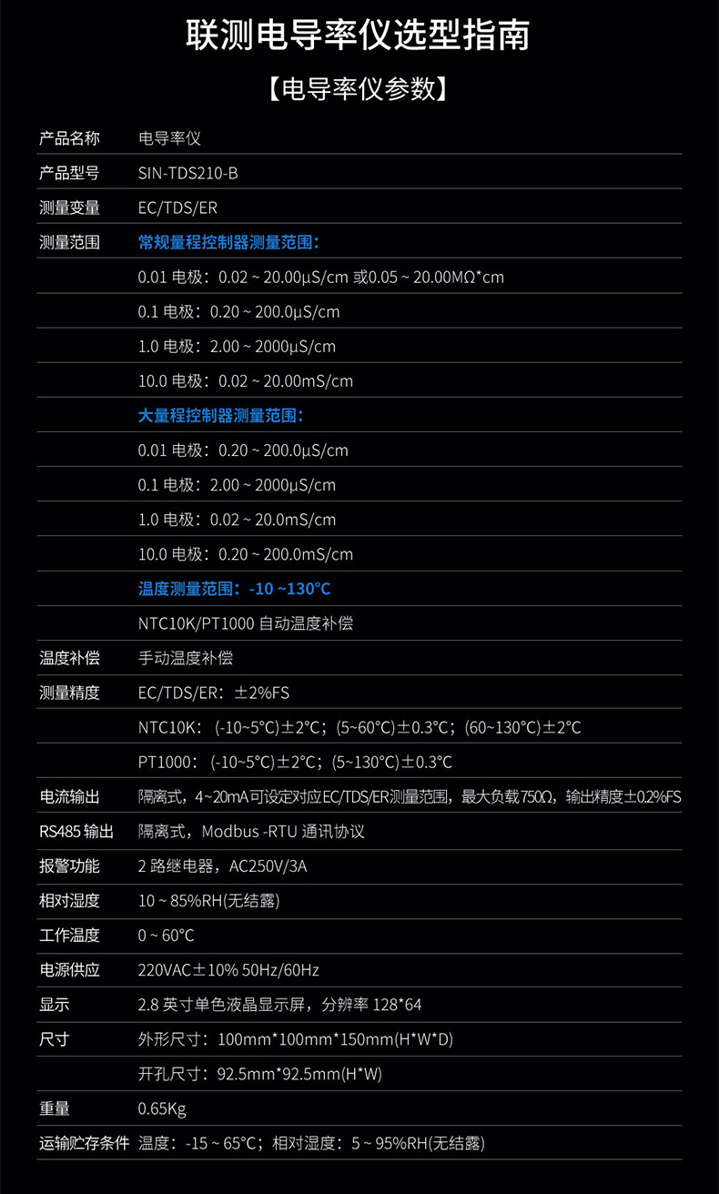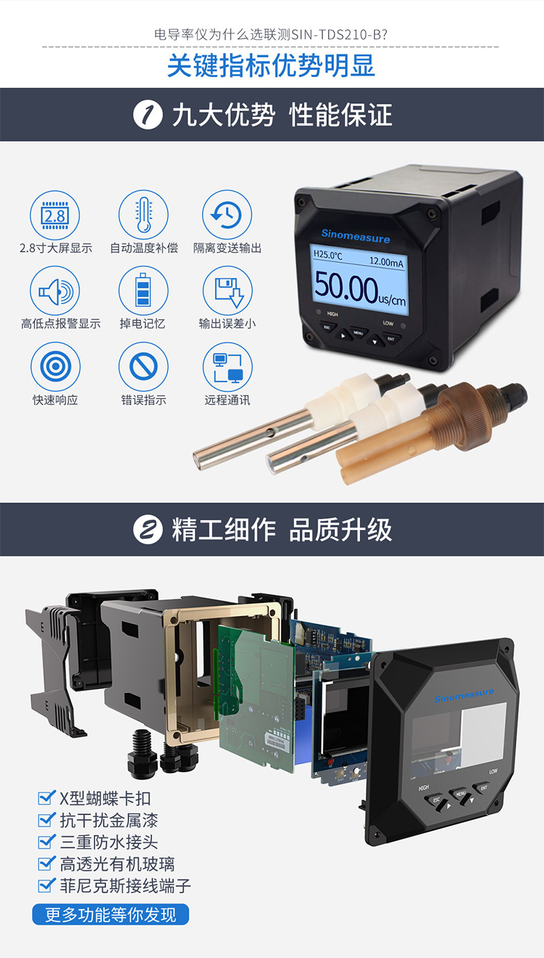 SIN-TDS210工業(yè)電導(dǎo)率儀表,可對各種工業(yè)用水的電導(dǎo)率(TDS)值進行連續(xù)測量和控制,本裝置廣泛應(yīng)用于科學(xué)實驗裝備、化工、制藥、環(huán)保、冶金、造紙、食品、飲料及供水等行業(yè)。根據(jù)水工業(yè)的環(huán)境和特點結(jié)合國際供電標準,考慮了特殊環(huán)境的電氣設(shè)計規(guī)范,增加了220VAC供電。