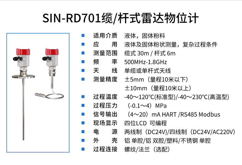 聯測SIN-RD701纜/桿式雷達物位計