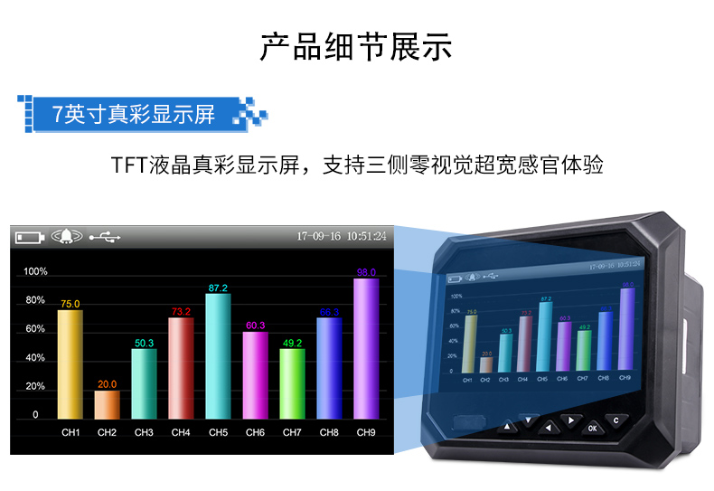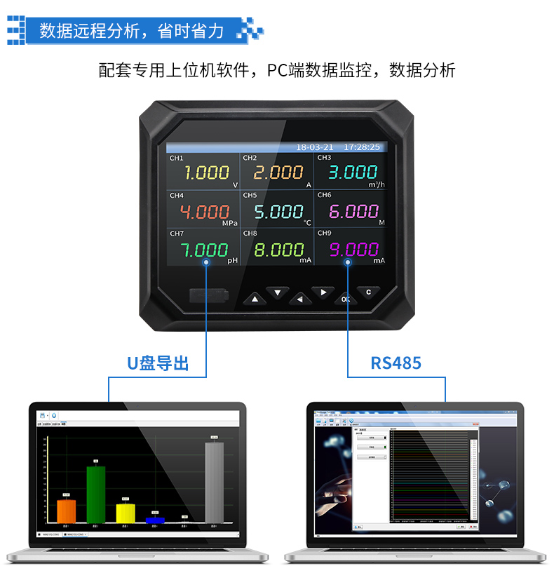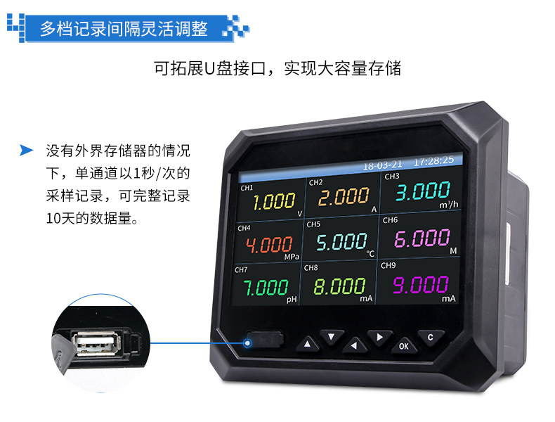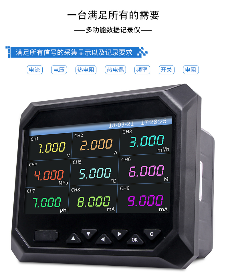 無(wú)紙記錄儀是將工業(yè)現(xiàn)場(chǎng)的各種需要監(jiān)視記錄的輸入信號(hào),比如熱電阻和熱電偶的溫度信號(hào)、流量計(jì)的流量信號(hào)、 壓力變送器的壓力信號(hào)等。通過(guò)高性能微處理器進(jìn)行數(shù)據(jù)處理,一方面在高分辨液晶顯示屏幕上以多種形式的畫(huà)面顯 示出來(lái),另一方面把這些監(jiān)察信號(hào)的數(shù)據(jù)存放在儀表內(nèi)部的大容量存儲(chǔ)芯片內(nèi),以便在儀表上直接進(jìn)行數(shù)據(jù)和圖形查 詢、翻閱和打印。