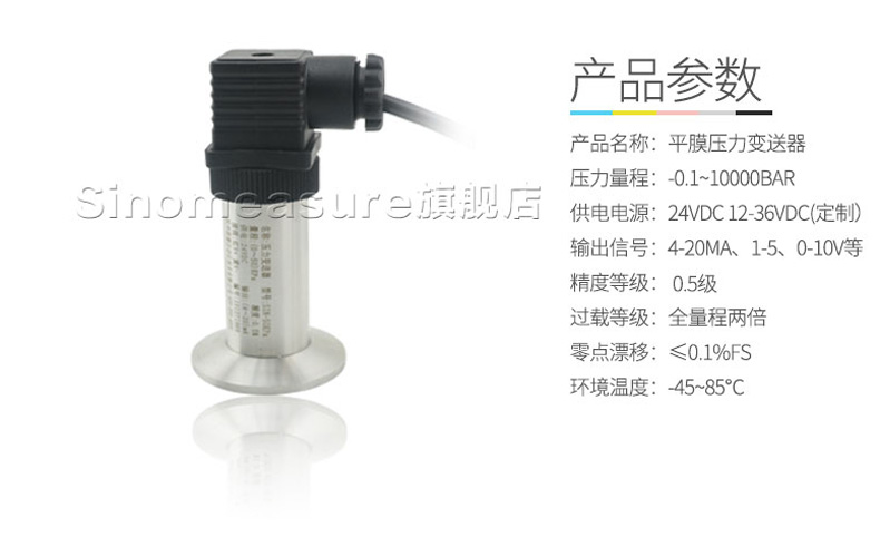 SIN-P350衛(wèi)生平膜型壓力變送器,衛(wèi)生平膜型液位變送器是測量端采用特殊堅(jiān)固處理的齊平隔離膜片。結(jié)構(gòu)緊湊、耐腐蝕,抗震動(dòng)、抗微粒沖擊、寬范圍溫度補(bǔ)償。膜片采用316L不銹鋼材料,特別適用于醫(yī)療、食品行業(yè)有衛(wèi)生要求的,粘稠流體壓力和液位測量,解決了結(jié)垢,堵塞,清潔衛(wèi)生等問題。高精度的信號處理電路位于將傳感器輸出信號轉(zhuǎn)換為標(biāo)準(zhǔn)輸出信號,可直接與計(jì)算機(jī)、控制儀表、顯示儀表等相連。采用一體化全不銹鋼結(jié)構(gòu),經(jīng)過多次不銹鋼焊接,實(shí)現(xiàn)了全固態(tài)設(shè)計(jì),安裝方便。廣泛應(yīng)用于食品、醫(yī)藥、衛(wèi)生及釀酒工業(yè)等部門。
